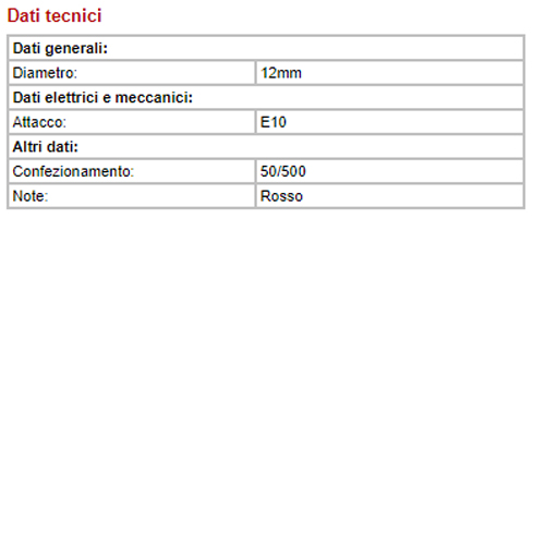 PORTA LAMPADA E10 GEMMA ROSSA 12MM