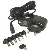 Questo alimentatore è dotato di connettore universale a cui applicare una delle sei spine di alimentazione DC coassiali in dotazione. Un'apposita chiave di commutazione seleziona la tensione di uscita attraverso il commutatore rotativo. Dotato di led rosso di stato, ideale per tutti gli apparecchi multimediali portatili alimentati DC. SPECIFICHE TECNICHE Tensione d'ingresso: 100-240Vac • Tensioni d'uscita: 3-4,5-5-6-7,5-9-12(1A) Vdc • Tensione d'uscita USB: 3x 5 Vdc • Corrente d'uscita: 1000 mA • Frequenza d'ingresso: 50-60 Hz • Prese coassiali: jack 3,5-3,5x1,35-5x2,1-5,5x1,5-5,5x2,1 5,5x2,5-2,35x0,75-4x1,7 mm.