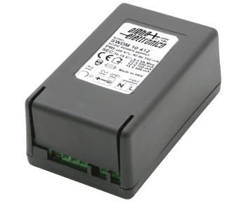 Alimentatore switching piccolo, con morsetti di collegamento, compatto e potente. Possibilità di incasso nelle scatole da 3 moduli (503) a muro. Per applicazioni di domotica, TVCC, Telecamere, sensori in genere. Ingresso ed uscita con morsetti a vite. Tensione costante. Protezione cortocircuito. Tensione d'ingresso: 230 V~ (-10 +6%) 50 Hz. Rendimento > 80%. Tolleranza della tensione d'uscita ± 5%. Residuo in alternata < 50 mV. Conforme alle norme: EN60065; EN55022, EN55024. Temperatura di esercizio: -10 + 30°C a pieno carico.