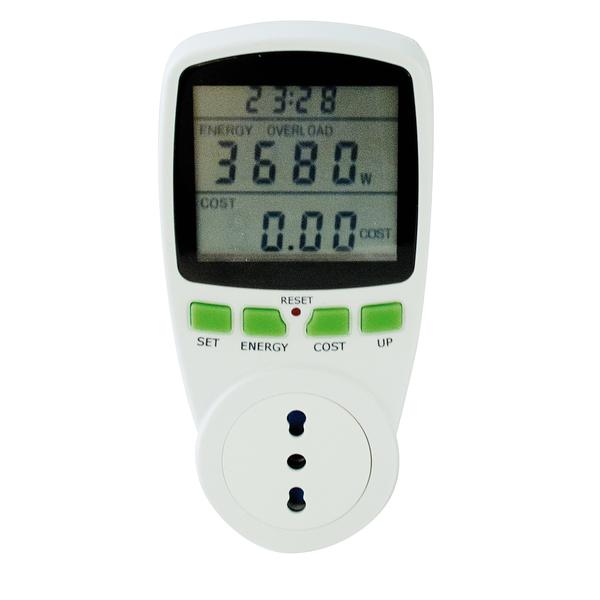 Strumento di monitoraggio dei consumi elettrici dei dispositivi. Permette la visualizzazione di Watt, Volt, Ampere, Hertz e stima in € del consumo effettivo. Visualizzazione carico di energia, di potenza e costo delle tariffe. Importo tariffe alimentazione programmabile. Visualizzazione del ciclo di lavoro totale.