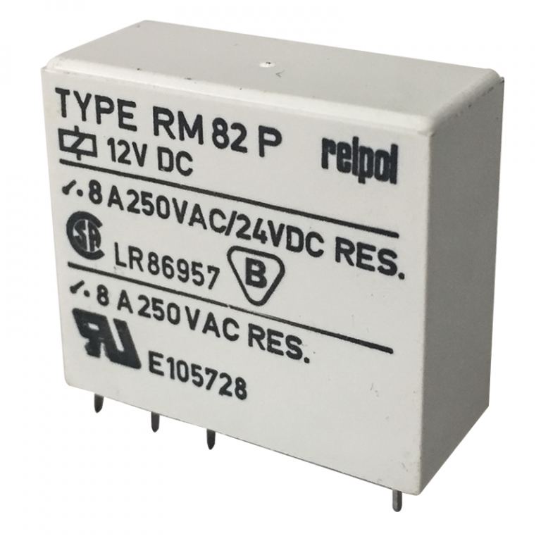 Relè 12V DPDT - RM 82 P - RELPOL. 8A 250VAC. Numero di PIN: 8.