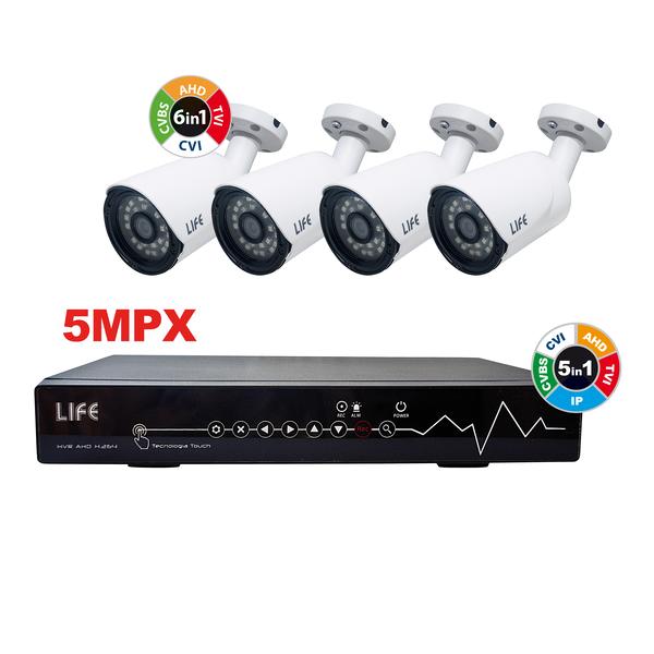KIT 4 TELECAMERE 5MPX 1/2.5" CMOS (75.AHD6104V2+75.AS80316U4WX4) XVR 4CH