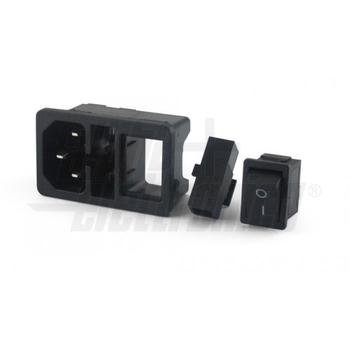Spina di alimentazione AC da pannello ad innesto - C14 - Con interruttore e portafusibile.