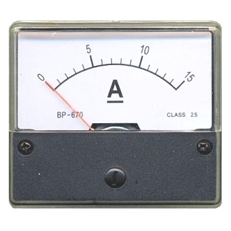 Amperometro 0-15 A/DC. Modello 0-15A/DC. Classe 2,5. Dimensioni: 70 x 60 x 35 mm. Display: 70 x 32 mm.