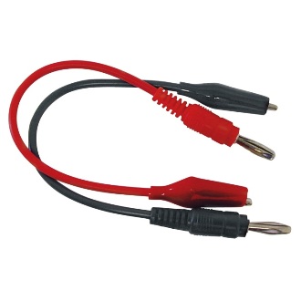 Cavetto con coccodrilli e spine a banane. Cavi 1 rosso e 1 nero con morsetti a coccodrilli isolati ed spine a banana diametro 4 mm. Lunghezza cavo 80 cm.