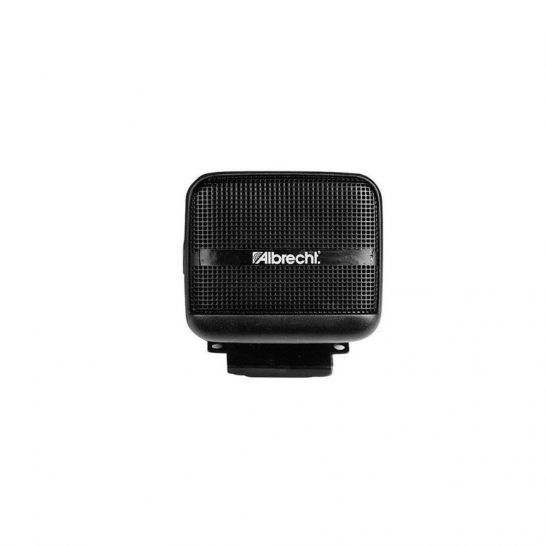 Albrecht CB12, altoparlante esterno, risposta in frequenza 300÷7000 Hz, 8 Ohm, potenza 5W, riproduzione chiara della voce, cono in Mylar per uso in ambiente umido, fissaggio (magnetico, biadesivo, viti, clips), cavo 170 cm, compatibile con tutte le radio.