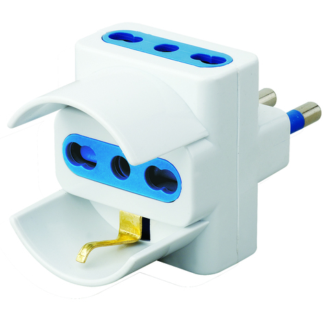 Adattatore da 3 prese 10A/16A: 1 schuko + 2 bipasso 10/16A.