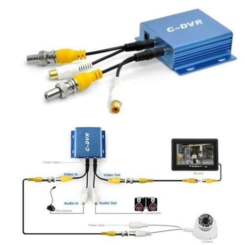 Mini videoregistratore DVR di sicurezza con registrazione su scheda microSD, IN e OUT video, motion detection, costruito in metallo di alta qualità. Questo mini DVR è il dispositivo ideale se sei alla ricerca di un modo economico e veloce per installare telecamere di sicurezza per e gestirle facilmente col sistema DVR. Basta collegare una telecamera al DVR e registrare immediatamente su una scheda MicroSD. Per visualizzare il filmato è possibile recuperare i dati dalla scheda MicroSD su un PC o collegare un monitor al connettore VIDEO OUT. Realizzato in metallo di alta qualità e con fori per l'installazione, basta avvitare il DVR al muro o su una superficie piatta, collegare la telecamera a circuito chiuso, e tutto ciò che si vede dalla telecamera viene registrato sulla scheda microSD inserita nel DVR. Varie modalità di registrazione sono disponibili come: la registrazione automatica appena si rileva del movimento, la registrazione continua e la registrazione mista. Compatto ma ben costruito, questo DVR in metallo mini non vi deluderà.