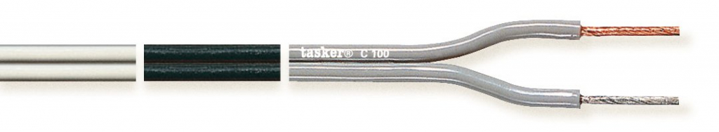 Piattina polarizzata per Casse acustiche, Home Theatre e sistemi Hi-Fi Car. I conduttori sono uno in rame rosso e l’altro in rame stagnato per la polarizzazione.