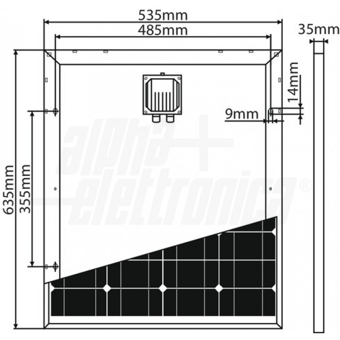 PANNELLO SOLARE FOTOVOLTAICO MONOCRISTALLINO 45W 21,9V 535X635X35mm