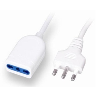 Cavo prolunga di alimentazione con spina rete 16 A e presa 10/16 A bipasso. Sezione: 3 x 1,0 mm. Lunghezza 3 mt.