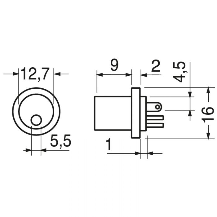 PRESA DC PANNELLO ISOLATA 2,5X5,5mm