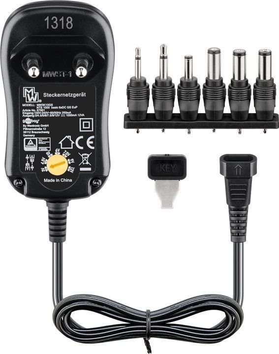 ALIMENTATORE UNIVERSALE 3V - 12V - INCLUDE 6 ADATTATORI DC - MAX. 12W 1A