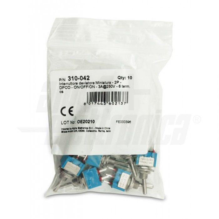 INTERRUTTORE DEVIATORE MINIATURA A LEVA ON-OFF-ON 6 CONTATTI AC 125V 3A DA PCB