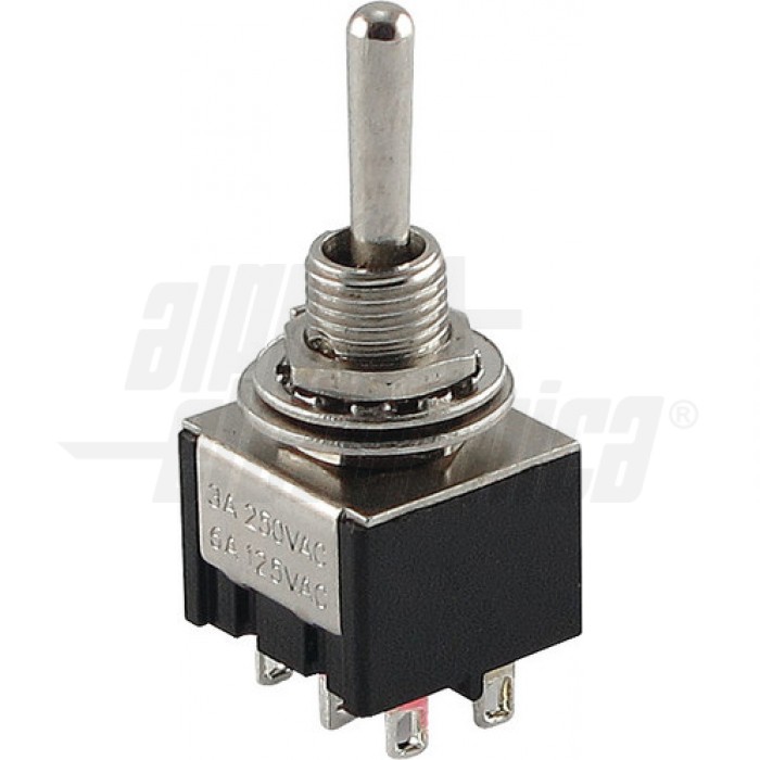 Interruttore deviatore Miniatura - 2P - DPCO - (ON)/OFF/(ON) - 3A@250V - 6 term. a saldare