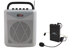 Compatto e leggero è trasportabile ovunque. E’ alimentabile sia da rete elettrica che da batterie interne ricaricabili. Completo di radiomicrofono VHF con archetto per amplificare la propria voce lasciando libere le mani. Incorpora un pratico lettore di brani MP3 tramite presa USB. E’ possibile anche collegare un ulteriore microfono a filo e una sorgente esterna tramite jack 3,5mm. Il pannello di comando presenta, oltre ai regolatori di volume, comandi rotanti per eco e toni.