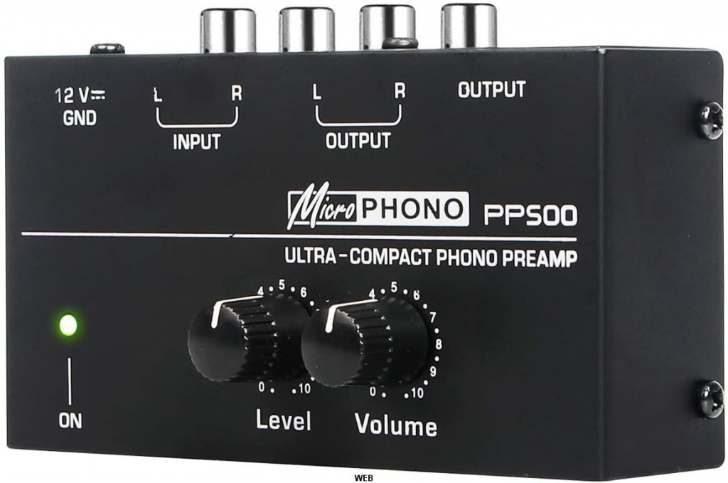microPHONO PP500 preamplificatore ultracompatto con controlli di livello e volume