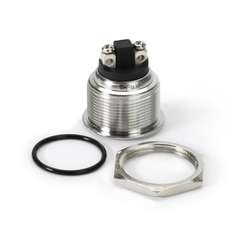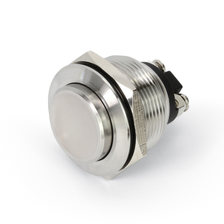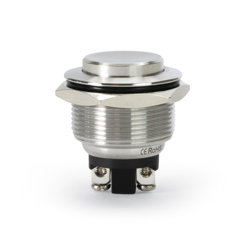 PULSANTE IN METALLO 22MM TESTA CONCAVA 2 CONTATTI A VITE N.O. IP65 250VAC 3A