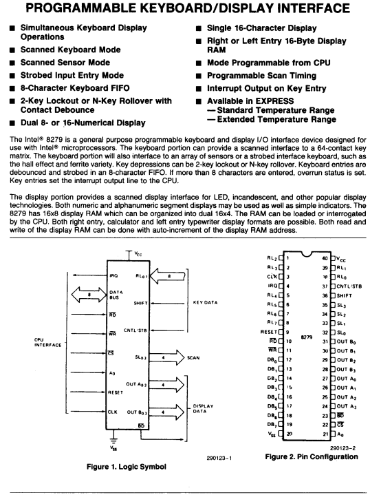 INTEGRATO P8279 PROGRAMMABLE KEYBOARD - DISPLAY INTERFACE