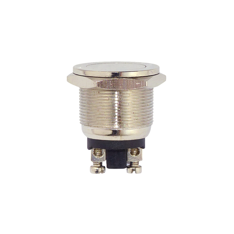 PULSANTE PIATTO IN METALLO 19 MM 2 CONTATTI A VITE N.C. 230VAC 2A