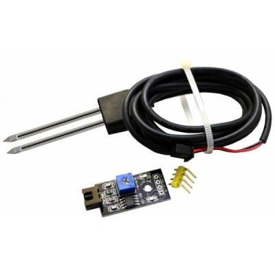 Composto da una sonda con due terminali metallici e un piccolo modulo basato sull'integrato LM393, permette di rilevare la percentuale di umidità del terreno, ad esempio in un vaso di fiori. Quando la percentuale di umidità nel terreno è inferiore ad un valore di soglia impostato, sull'uscita D0 sarà presente un livello logico alto, mentre quando la percentuale supererà il valore di soglia impostato, sull'uscita D0 sarà presente un livello logico basso. Particolarmente indicato per realizzare un dispositivo di innafiatura automatica. Dispone inoltre di uscita analogica A0 che può essere collegata all'ingresso analogico di Arduino, Fishino, ecc. |