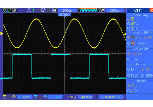 - Accoppiamento Ingressi: AC, DC, GND - Impedenza Ingressi: 1 Mohm ±2% 20pF±3pF - Attenuazione Sonda: 1X, 10X - Fattore attenuazione sonda supportato: 1X, 10X, 100X, 1000X - Tensione massima in ingresso: CAT I and CAT II: 300 VRMS (10×), Installation Category; CAT III: 150VRMS (1×).