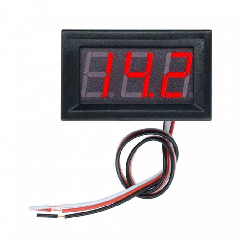 Questo voltmetro in CC può misurare tensioni da 0 a 30V con una risoluzione di 0,01 sotto i 10 V e 0,1 oltre i 10V. Così una tensione di 7,29 viene visualizzata effettivamente 7,29 mentre una tensione di 13,35,viene visualizzata 13.3.Questo è dovuto all’utilizzo di soli 3 digit. Questa versione con 3 fili è la migliore soluzione perché permette di misurare tensioni minime come 0,55 V ed inferiori.