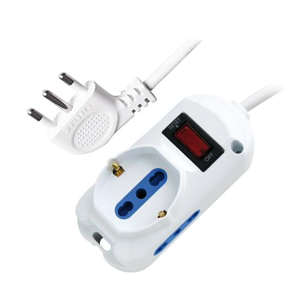 MULTIPRESA 1PRESA SCHUKO/BIPASSO+2PRESE BIVALENTI-SP.10A(2P+T) 90°+INTER. Protezione da Sovraccarico,2500W