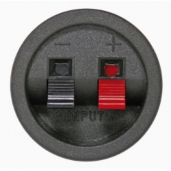 Morsettiera 2 poli rotonda per casse acustiche. Morsettiera ad incasso con pulsante a molla per cavo fino a 4 mm. Materiale in ABS. Dimensione diametro 56,5 mm. Dimensione d'incasso diametro 45 mm. Profondità circa 24 mm.