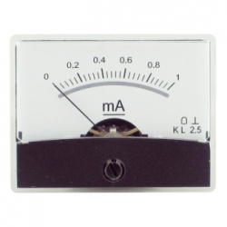 Amperometro con specchio 0-1 mA/DC. Modello 0-1m A/DC. Classe 2,5. Dimensioni: 60 x 46 x 38 mm. Display: 60 x 30 mm.