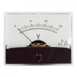 Volmetro con specchio 0-15 V/DC. Modello 0-15 V/DC. Classe 2,5. Dimensioni: 60 x 46 x 38 mm. Display: 60 x 30 mm.