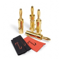 Set 4 spine a banana incl. tubo termoretraibile Dynavox. Set di 4 spinotti a banana per il collegamento di cavi per altoparlanti a componenti di alta qualità. Placcato in oro per diametri del conduttore fino a 4 mm. Fissaggio del cavo lateralmente mediante 2 viti senza testa. 4 pezzi tubo termoretraibile lunghezza circa 50 mm.