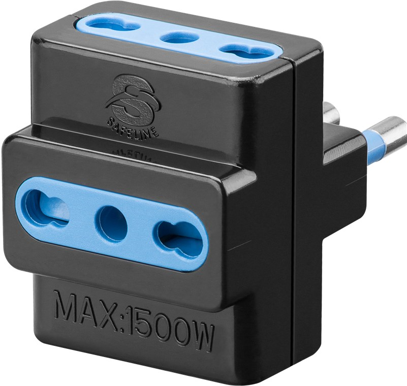 ADATTATORE TRIPLO SPINA 16A 2 PRESE BIPASSO CON SCHUKO BIPASSO TRIVALENTE