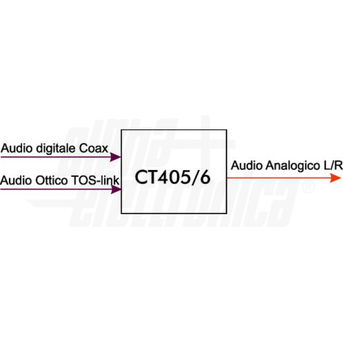 Il convertitore CT405/6 permette di convertire il segnale audio digitale in un segnale audio analogico.