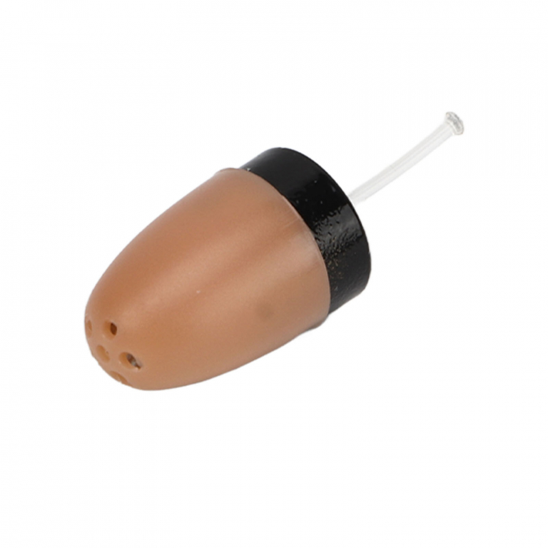 Invisibile microauricolare senza fili che riceve il segnale tramite una bobina induttiva attraverso campi elettromagnetici.