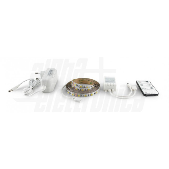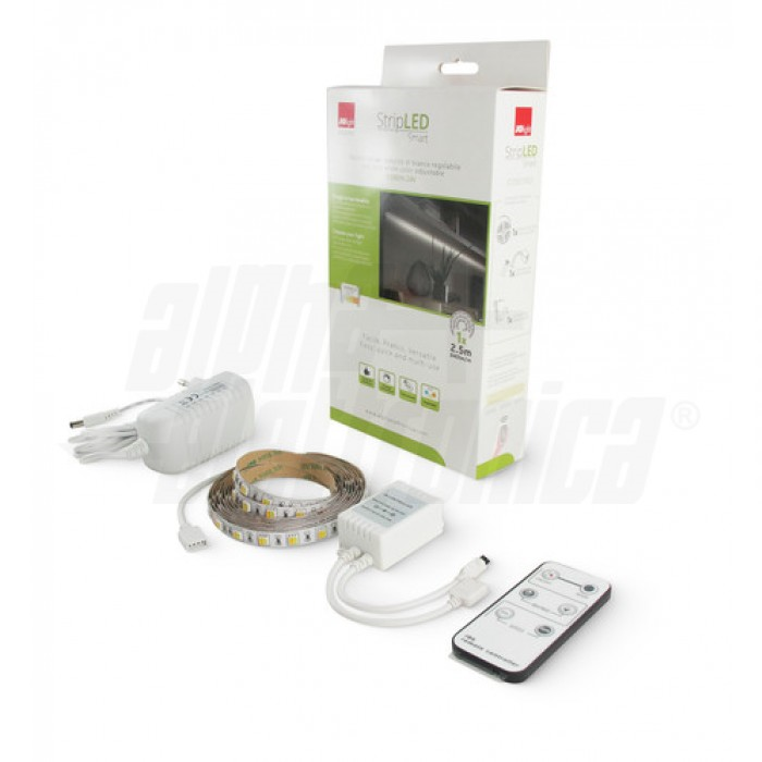 Il kit include un nastro led ad alta intensità bianco caldo, naturale e freddo dotato di bi-adesivo, alimentazione 24V, controller con telecomando multifunzione con il quale è possibile modificare la tonalità e l'intensità della luce emessa dal nastro led.