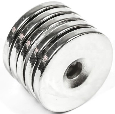 Il neodimio é una pietra molto rar che, addizionata a ferro e boro forma una lega (Nd14Fe21B) con cui si ottengono i magneti tra i più potenti attualmente disponibili sul mercato.