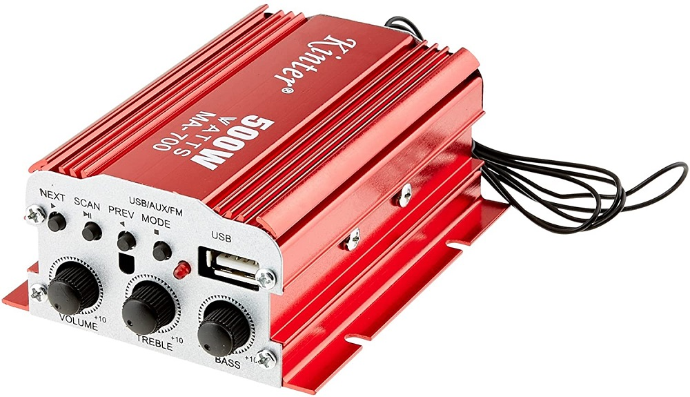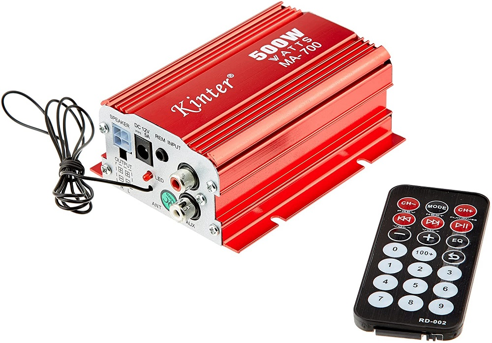 Amplificatore audio piccolo e compatto da installare ovunque utile per migliorare e amplificare la qualità del suono in auto o a casa. Alimentazione a 12V (alimentatore non incluso). Dispone di una porta USB per la riproduzione di mp3 ed utile per la ricarica dei dispositivi, completo di telecomando per la gestione a distanza, munito di cavetto con sensore che da la possibilita di installare l'amplificatore anche in zone nascoste ad esempio sotto un cruscotto e quindi il sensore torna utile alungandolo e rendendolo visibile al telecomando.
