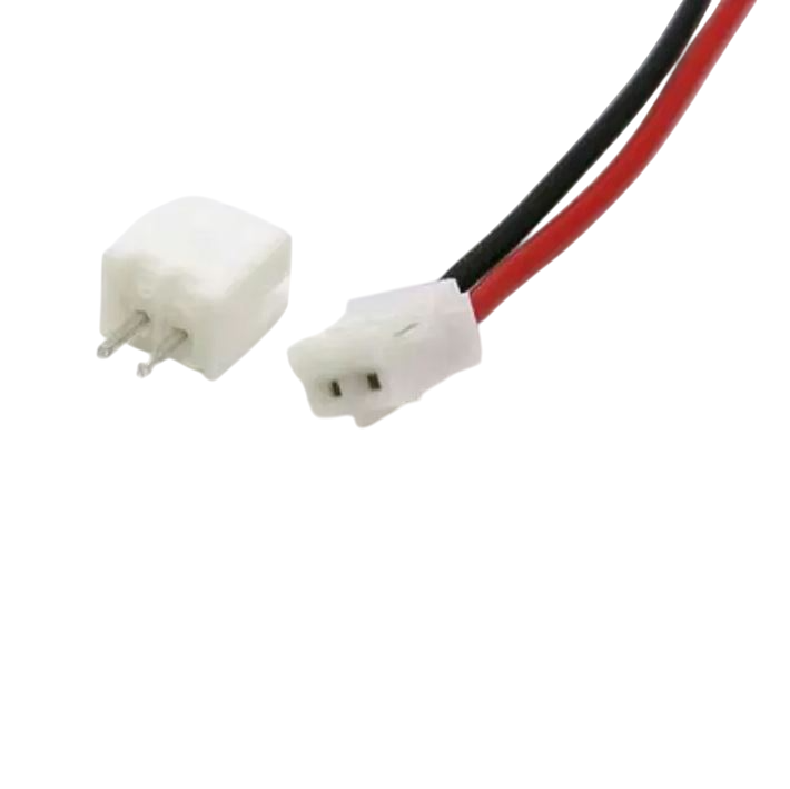 CONNETTORE JST 2P F con cavetto R/N in coppia con CONNETTORE JST 2P M da PCBconnettore plug a 2 pin distanza di separazione 2 mmspecifiche cavo: 7 Sezioni da 0.11mm di rame zincatodiametro esterno 0.9 mm peso: 20g