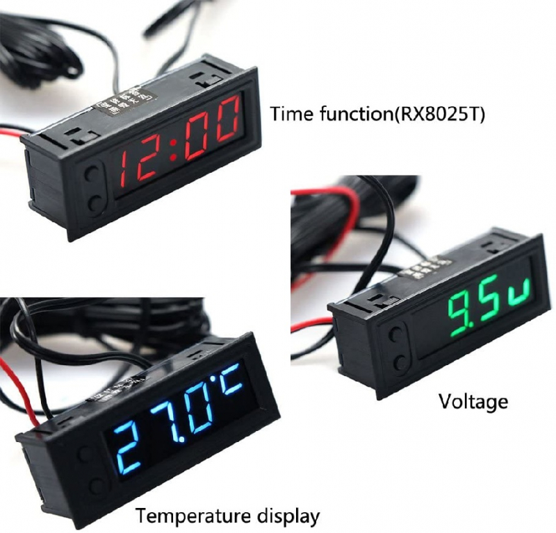MODULO Multifunzione 3 IN 1 - OROLOGIO, VOLTMETRO e TERMOMETRO IN / OUT 12V VERDE
