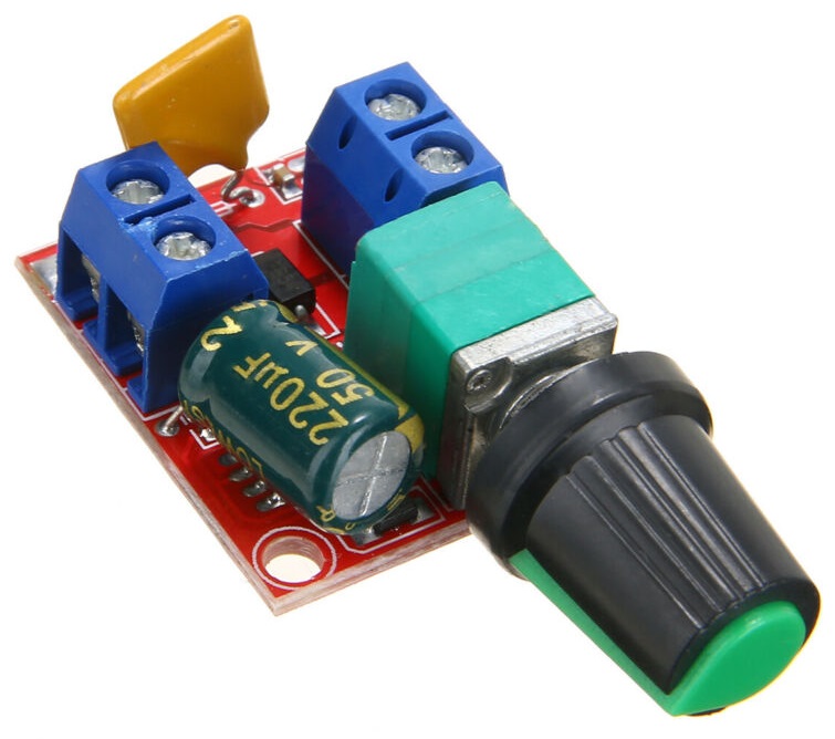 Modulo driver PWM progettato per motori DC, dove la velocità di rotazione si può controllare regolando il segnale PWM tramite il potenziometro incorporato sulla scheda. Il sistema può essere utilizzato anche come dimmer per diodi LED. il potenziometro incorporato è dotato anche di interruttore. Quindi ruotando in senso antiorario si diminuisce il livello di uscita fino a spegnere completamente con l'interruttore. La frequenza del segnale di controllo è 10 kHz. D'altra parte, la tensione di alimentazione, che è anche la tensione di esercizio del motore, può essere compresa tra 3 e 35 VDC. La potenza di uscita massima del sistema è di 90W.