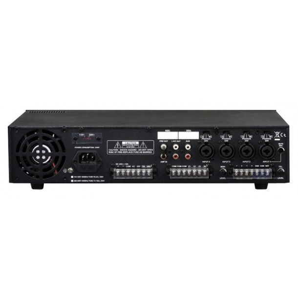 GLEMM Amplificatore PA 170W - 4 zone 25, 70, 100V 4-8 Ohm 220V 24V +48V PHANTOM