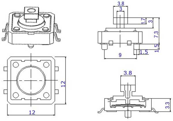 • Dimensioni minipulsante (mm): 12x12x7,3 (altezza)