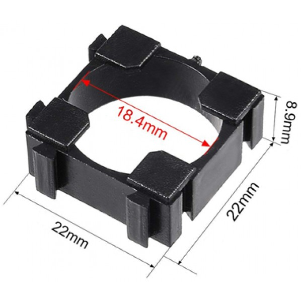 Realizzato in materiale plastico, questo particolare supporto componibile, permette di accogliere 1 batteria ricaricabile al litio tipo 18650 con terminali a saldare (non comprese, vedere prodotti correlati). Ogni supporto dispone di appositi incastri che permettono di creare supporti sempre più grandi, ottenendo pacchi batteria con la capacità e la tensione voluta. Per essere utilizzati necessitano di due pezzi identici, uno per la parte superiore e uno per la parte inferiore. Dimensioni (mm): 22x22x8,9, diametro foro centrale: 18,4 mm.