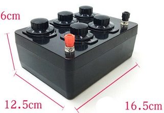 con questo resistore si potranno calibrare le resistenze nei circuiti senza bisogno di trimmer, grazie ad i suoi 5 selettori non si ha bisogno di un tester per misurare l'impedenza, la precisione del prodotto e di 0,1 ohm la resistenza puo essere variata da 0 a 9999,9 ohm