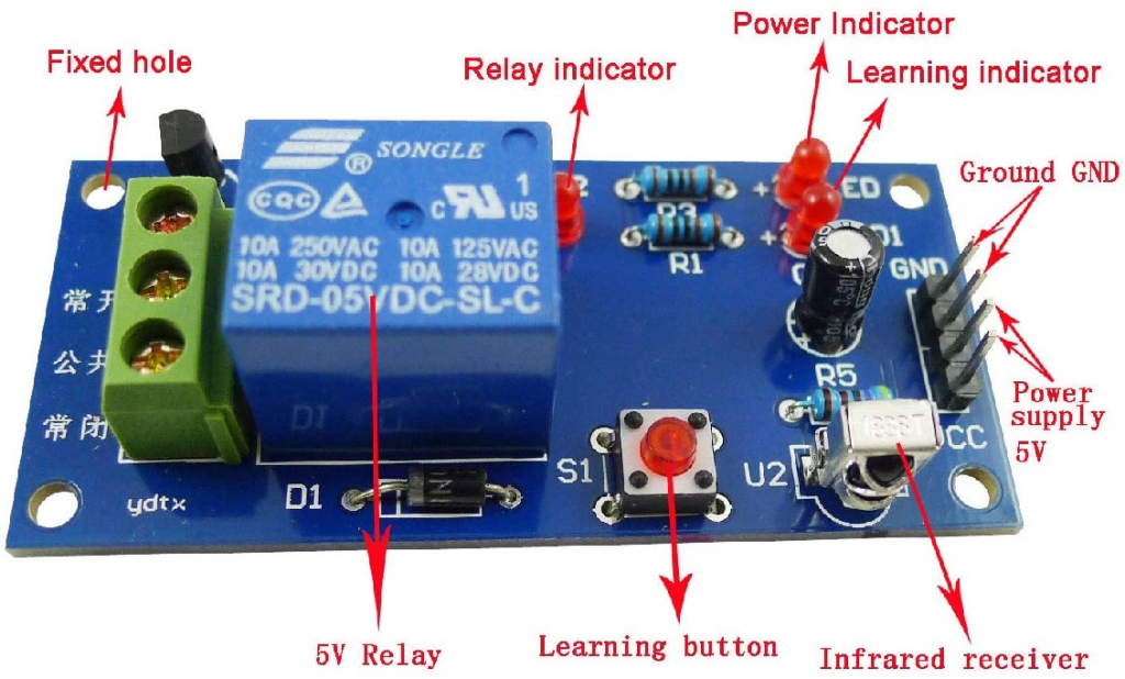 modulo relè telecomandato a infrarossi con autoapprendimento del canale.