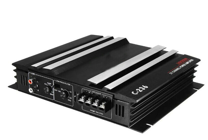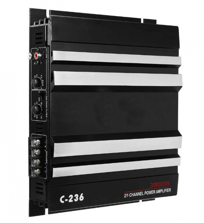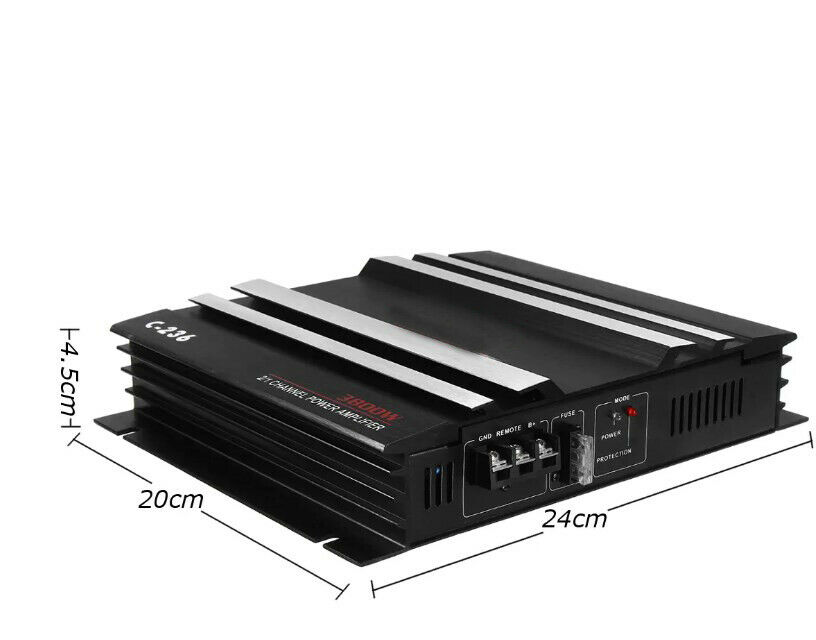 Amplificatore per auto a 2 canali 12V 3800Wmax filtro passa basso