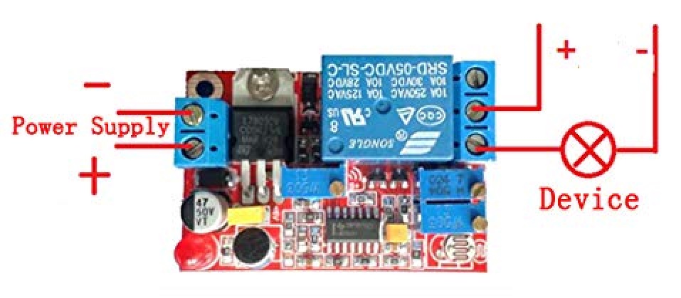 Modulo RELE con sensore LUCE e SUONO con TIMER - 5 a 30Vdc