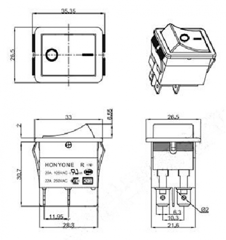 Contatti: ON-OFF  DPST   (Double pole, single throw)