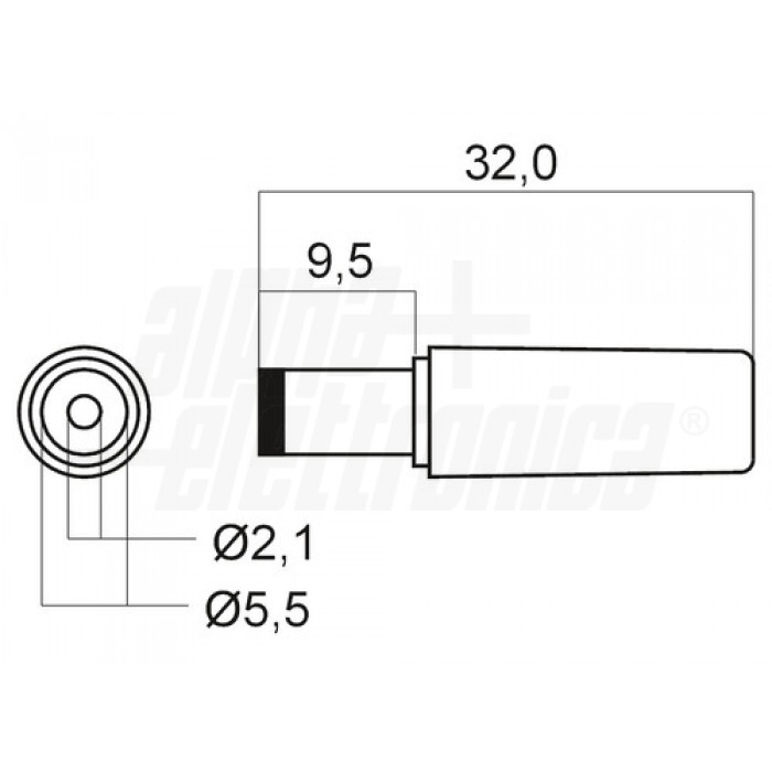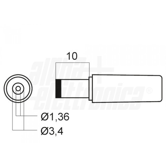 Spina di alimentazione DC - ø3,4-1,36mm - contatto 10mm SPINA DC VOLANTE 3,4X1,36
